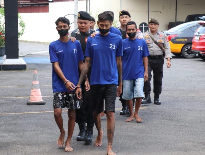 “Petugas turut mengamankan sejumlah barang bukti yang diduga digunakan dalam aksi kekerasan, yakni satu sabit dan satu selang berwarna hijau,” kata Jumadi.