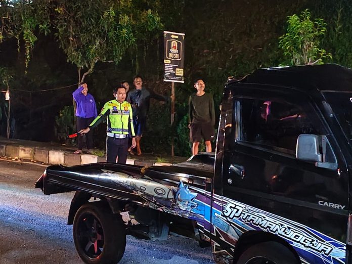 Menurutnya, peristiwa tersebut melibatkan satu unit mobil Carry Pick Up yang dikemudikan oleh IA (26). Kendaraan diketahui melaju dari arah timur menuju barat. Sesampainya di lokasi kejadian, kendaraan diduga kehilangan kendali, kemudian oleng ke kanan hingga menabrak pembatas jalan dan pohon di pinggir jalan, sehingga kendaraan terbalik.
